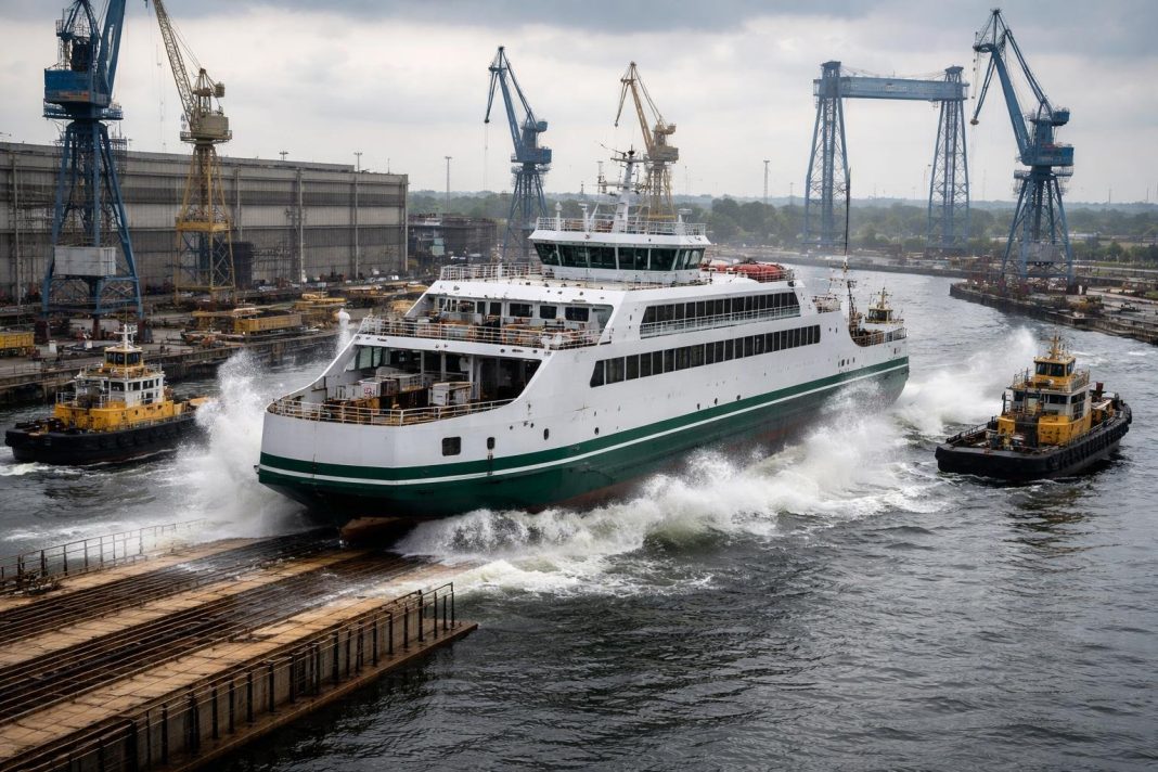 La şantierul Damen Galaţi a fost lansat la apă cel de-al zecelea feribot din clasa Island, destinat operatorului canadian BC Ferries. Nava este ultima dintr-o comandă de patru unităţi şi se va alătura celor şase feriboturi Island deja livrate, transformând această clasă în cea mai numeroasă din flota companiei.